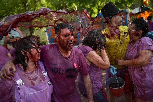 據(jù)報道,作為西班牙最受歡迎的節(jié)日活動之一,紅酒大戰(zhàn)旨在慶祝西班牙圣彼得(St. Peter)和里奧哈兩地豐富的葡萄酒產(chǎn)量。近年來,該活動也吸引了不少來自世界各地的年輕游客。更有不少游客從澳大利亞遠道而來。活動主辦方表示:“參加活動時,必須盡快讓周圍人的全身都沾滿紅酒。”