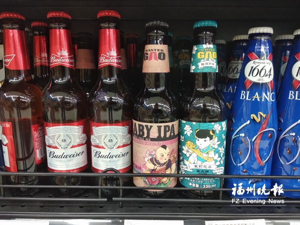 在晉安區(qū)的一個大型超市記者看到,貨架上有十多種果味啤酒,其中價位高的每瓶十幾元,價位較低的每瓶兩三元。超市酒類銷售主管告訴記者,本月初至今果味啤酒的銷量同比增加了15%,顧客以女性為主。