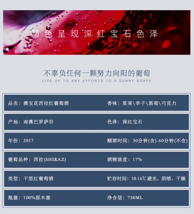 假如您對"澳寶花西拉紅葡萄酒"感興趣,請您在這里給我們留言。我們將會認真處理您的信件,并盡快與您聯系!謝謝!