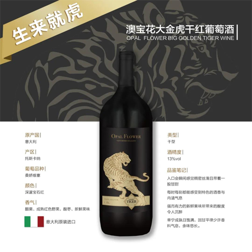 意大利進口澳寶花大金虎桑嬌維塞干紅葡萄酒1.5L